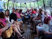 How perfectly perfect, a boat ride down Big Cypress Bayou was arranged and we were booked to life preserver capacity. I soon had a waiting list and one woman all the way from Beaumont, Texas. I believe Charles' name and reads are getting to be known.A nice little breeze came up off the water as we floated down the river with the Pulpwood Queens, the Martins as our special guests in tow. Captain Johnny Nance gave us a splendid talk on the history of the river and its importance to the economy of Jefferson, Texas. As we turned to come back, Charles stood at the stern of the boat and began a reading like no other. As he read, the words drifted off the page in perfect rhythm with the rock and sway of the boat. He read of looking at the water. We looked at the water. He read that you could see the reflection of the trees. We were seeing the reflection of the cypress trees on the bayou. If ever there has been a perfect marriage of words to experience, we were witness to the event.