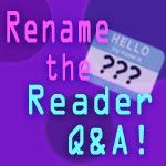 So, we are turning to you! If you could rename the “Reader Q&A,” what would you call it? After all, this is YOUR feature. Send us your suggestions by filling in the form here by Monday, March 8th. And, as our way of saying thank you, we will send two free books to the person whose title we select and one book each to a group of up to ten runners up. If more than one entrant suggests the winning title, then the person who submits the title first will be the winner. We can’t wait to hear what you have to say. One last thing --- you need to be over 13 to enter.