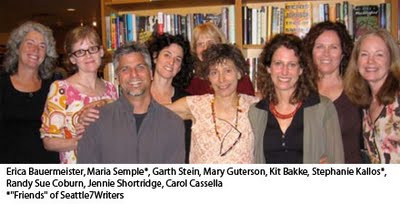 Other core members are co-founder Garth Stein, Erica Bauermeister, Kit Bakke, Carol Cassella, Randy Sue Coburn, and Mary Guterson. “Friends of Seattle7” include Jamie Ford, Susan Wiggs, Stephanie Kallos, Erik Larson, Tom Robbins, and many more.