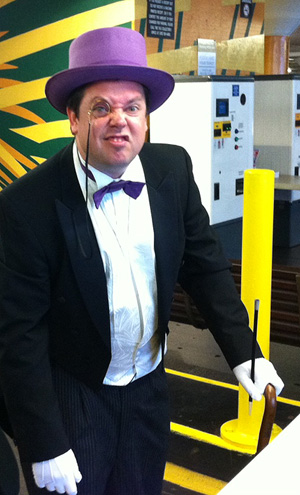 Only in San Francisco would Batkid and Batman, played by Eric Johnston of Lucas Arts, show up in twin Lamborghinis at their crime fighting destinations. The Penguin, played by Lucas Arts’ software engineer Mike Gutan, squealed off with a trussed up Lou Seal in a Rolls Royce. You’ve got to hand it to Gotham City West: They like to do things in style.