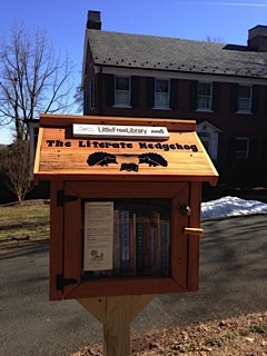I received my LFL in December 2013 as a Christmas gift. It is now installed in my front yard. My official Little Free Library number is 10628, but it is nicknamed "The Literate Hedgehog" because of my pet hedgehog and because I ran a reading blog with the same name last school year. I painted my LFL to include the name and images of hedgehogs reading books. You can visit http://