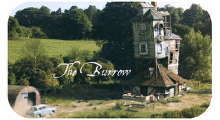 The Burrow: This is the home of the Weasley family, and throughout the series it becomes a second home to Harry. The Burrow is cluttered and homey --- it’s composed of several stories held up by magic and it has a lovely garden, which is the home to a couple of gnomes. In the living room sits a special clock that, instead of displaying the time, shows the current location of each member of the Weasley family. Above Ron’s room is the attic, where a friendly ghoul took up residence and occasionally bangs on the pipes when things get a bit too quiet in the Weasley household.