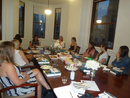 Members of The League (left to right) with Daisy Goodwin seated in front: Tracy Dungo, M.C. Kiselick, Jaime Petkanics, Sara Bryant, Maggie Porges, Bevin Kenny, Carolina AguilarJamie Dennison, who was unable to attend at the last moment, gave me some background on the group. “The core of our group was originally women who attended Hamilton College together and graduated in '07, '08 and '09, but we've grown to include friends, siblings, and friends of friends, ranging in age from 24-29 years old.”