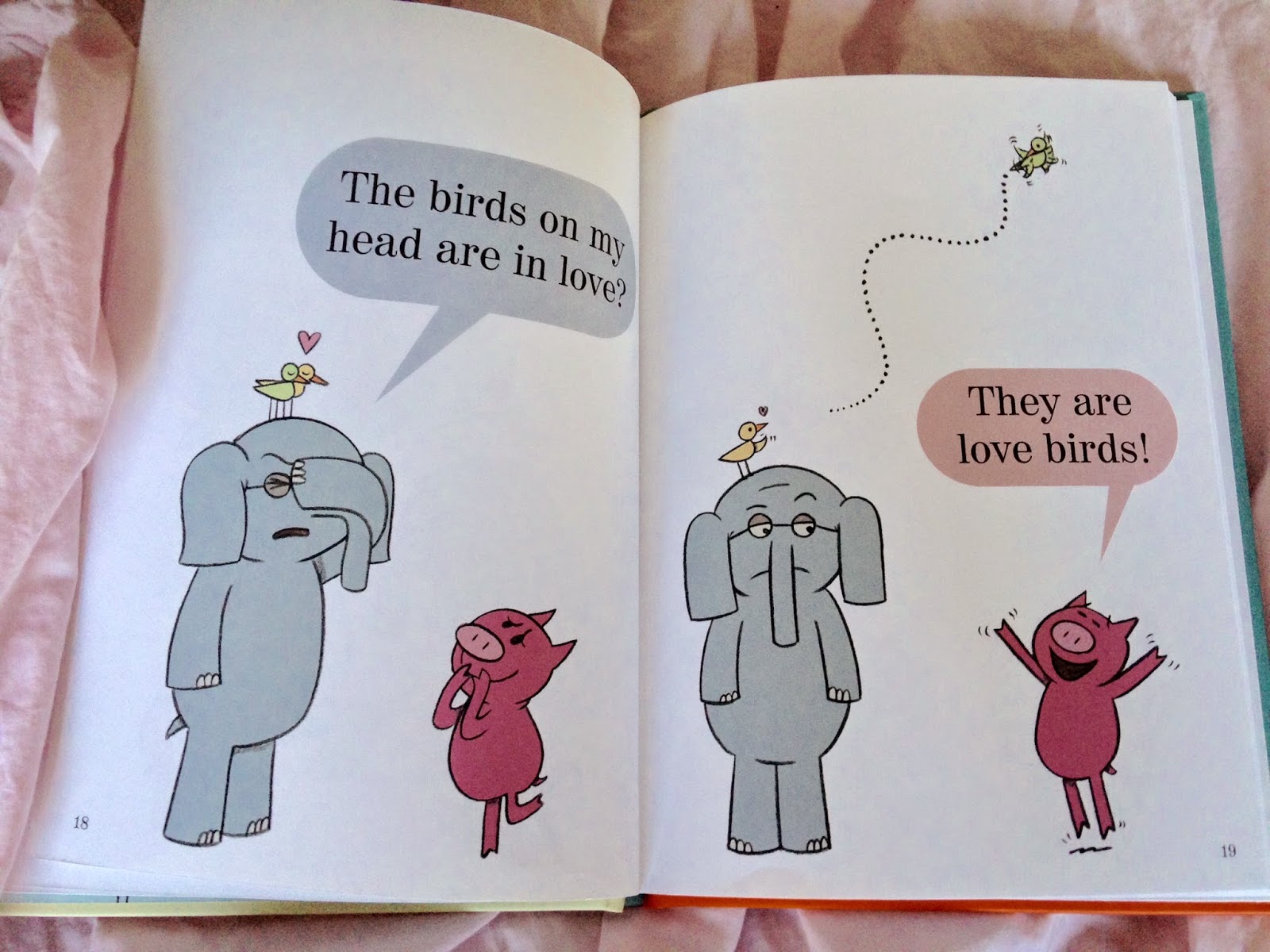 Here is a cute scene where you can see their contrasting personalities, which makes for a silly story. Piggie was my favorite, being a bit ignorant in a cute and silly way.