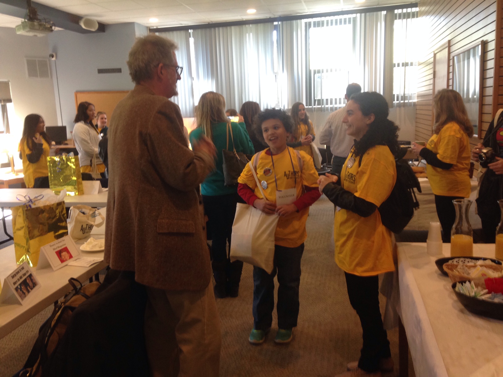 Furthermore, two teen volunteers were matched with each author --- they showed their "charge" where to go throughout the day and ate lunch with him or her. One of Matt Blackstone’s teen volunteers said that the meal was definitely her favorite part of the day --- they talked about “the same things I talk about with my friends --- fan fiction and superheroes.”
