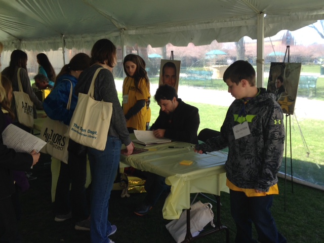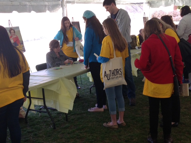I got to talk to a lot of teens as we milled around the tent, and got tons of great feedback about the day. One teen, Molly, said that she loved talking to the authors and thinks that next year the event should last all day long...she would stay for hours! Sixteen-year-old Lexi loved hearing how the authors got their start, because she wants to be a writer herself. Kaitlyn was liking the signing itself most of all, since you got one on one time with each author. She hadn't heard of all of the books before the event but ended up buying three of them by the day's end.