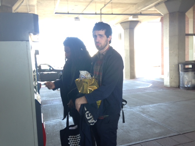 And that was that! Thanks to the librarians of Suffolk County for organizing the event (you can see some below, on the left). If Adam's face (on the right) as he waits to buy a rain ticket is any indication, we were all said to leave!