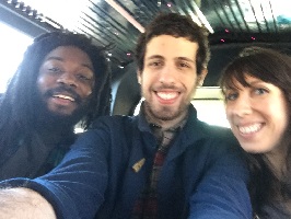 If there's anything I learned from taking the train with Jason Reynolds, it's that authors can't necessarily be trusted to get from place to place on their own ;) It looks like the librarians who planned Authors Unlimited were well aware of this and planned ahead --- as mentoined above, two teens were matched with each author and were assigned to help them get from place to place throughout the day and accompany them for lunch. Teens apply to get this positon, and can write which author they prefer to work with. On the left, you can see Henry Clark meeting his volunteers (I overheard them telling him that he was their first choice!).