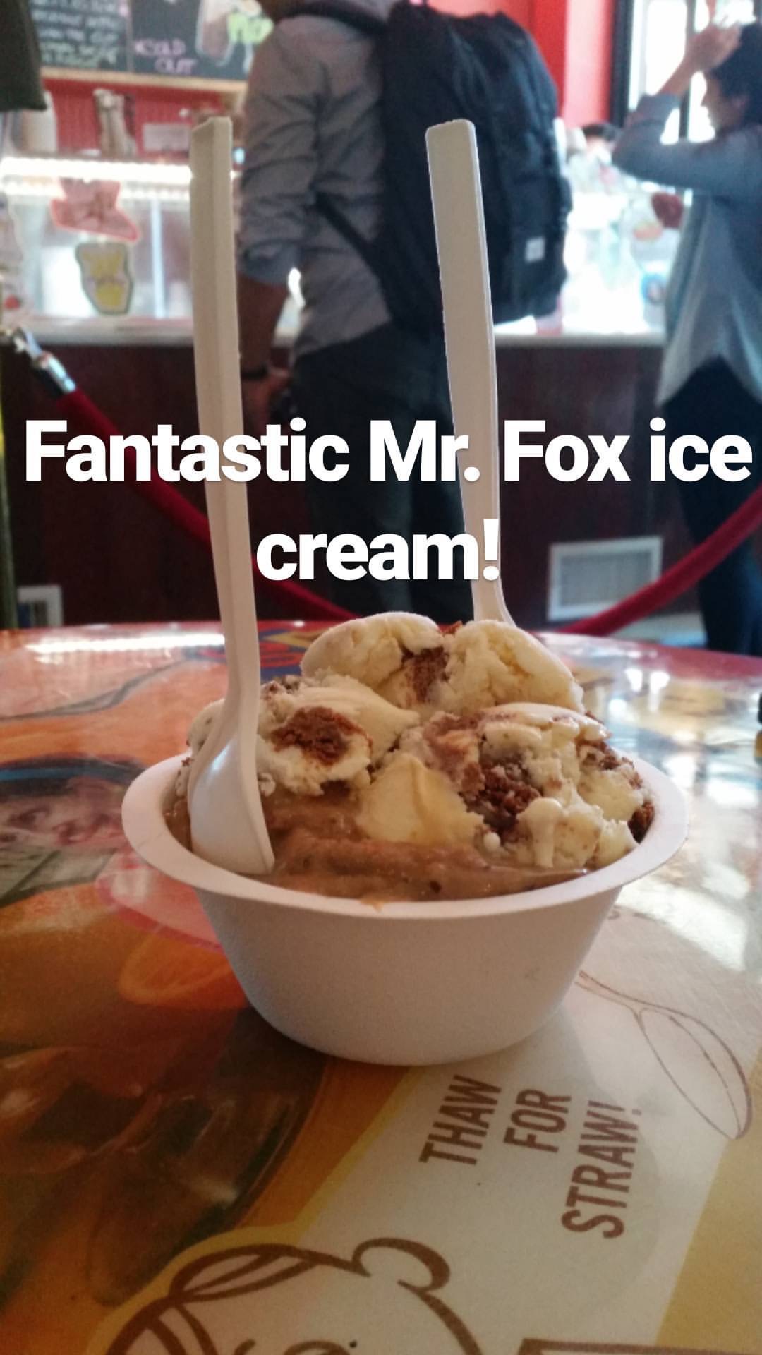 Also, we sampled the Donald Trump and Hillary Clinton flavors as well, apt for being the same day as the first presidential debate. The FANTASTIC MR. FOX ice cream was definitely my --- Dana’s --- favorite and Amanda was in love with the coffee ice cream. It reminded us of Cold Stone Ice Cream! We will definitely be hitting up Ample Hills again in the future!