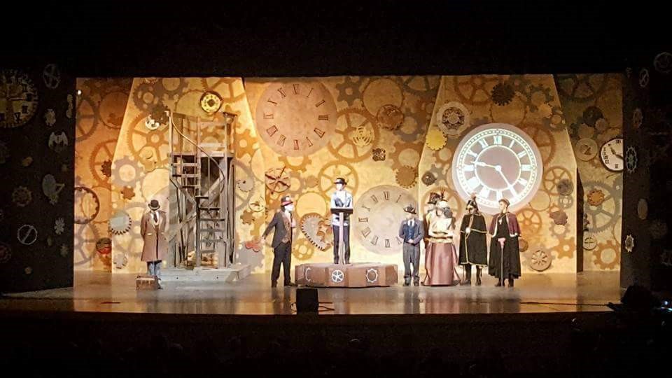 Running crew (the people who move the set pieces)!! I’m in the middle!! Our costumes were meant for us to be coal miners, but we ended up being called minions.