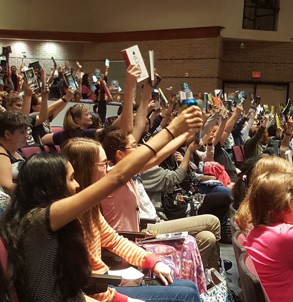 After a long and exciting day of panels, there were only two things left to do: the closing session and book signings. I’ll admit I was dreading what was probably going to be a speech thanking us all for coming and encouraging us to never stop reading and follow our writing dreams, blah blah blah. To my immense delight, however, TeenBookCon came through for me again! What actually followed was an incredibly competitive round of Family Feud featuring our beloved authors. The game was tactfully ended in a tie, door prize drawings were done, and that was the end of it --- no painfully drawn-out closing remarks, thank Dumbledore. I found myself once again dashing through the halls, this time to join the lines for my favorite authors.